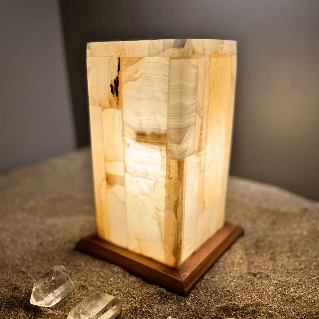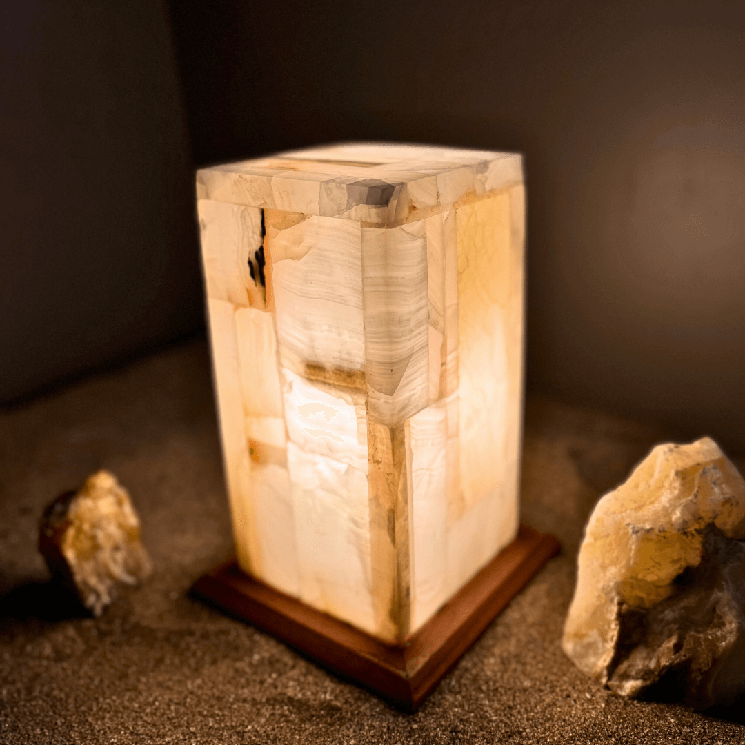 La luz atraviesa la piedra de manera orgánica y envolvente, creando ambientes serenos, equilibrados y con una presencia energética sutil pero profunda.