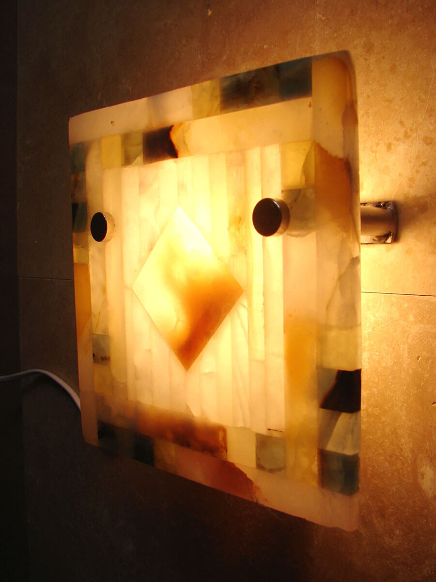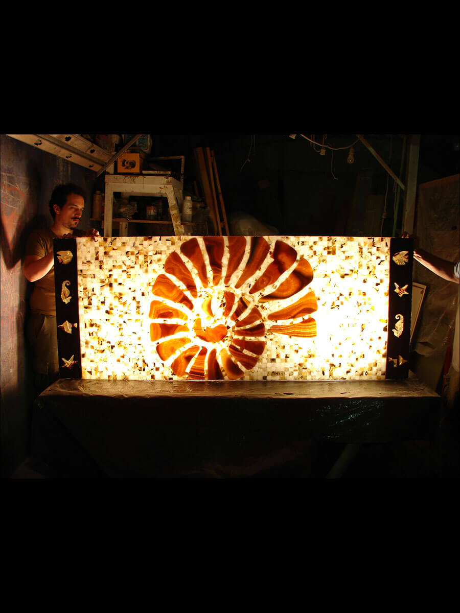 Además de nuestras piezas de catálogo de nuestra Tienda, realizamos trabajos a pedido del cliente. Pudiendo ser los mismos diseños del Catálogo en tamaños más grandes, como también diseños personalizados tanto para el hogar como para negocios, locales, etc. Los trabajos pueden incluir diseños estilo vitraux, realizarse a partir de dibujos provistos, o bien podemos acompañar en el proceso de diseño, a un costo adicional. Para nuestros trabajos es posible contar con toda la gama de colores de Ónix: Blanco, Azul, Rojo, Verde y Naranja. Trabajamos con profesionales de diferentes áreas, desde carpinteros hasta herreros, para realizar lo que estés imaginando.